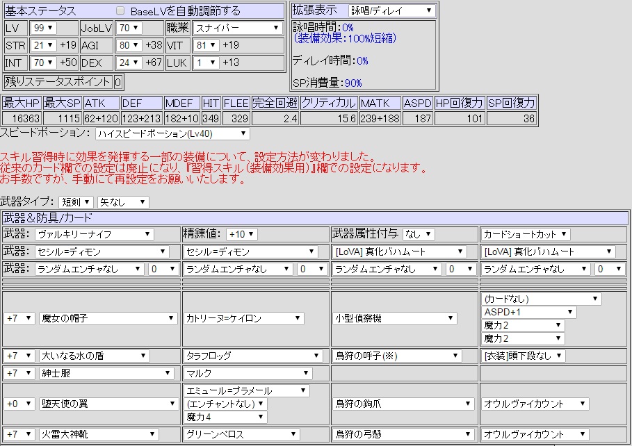 INT100,DEX100ブラギで詠唱50%,ディレイ90%カットすることを前提として以下の装備でアモンアプロなしの高火力鷹スナイパーが実現できます。